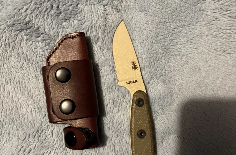Up for sale , brand new Esee Izula with a brand new custom leather scout style sheath. Try me with your trades !