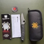 -Thor Damasteel blade, Carbon Fiber handles, Crowned Titanium back lock, Made in Italy, Includes Spyderco pouch, sticker and paperwork. On bearings, super smooth action