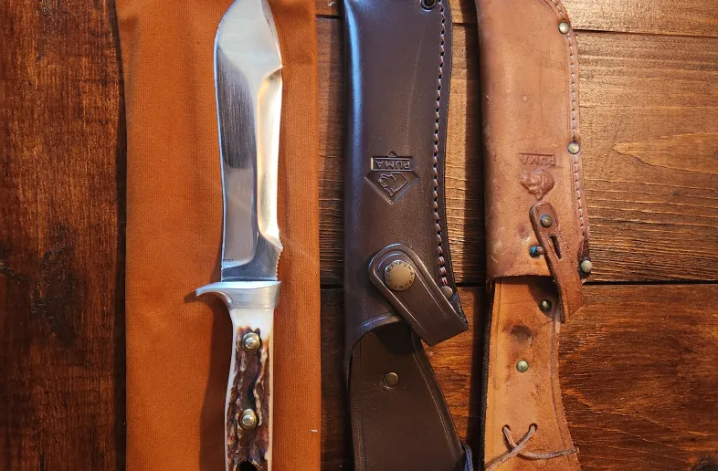 1969 Puma White Hunter knife. Nice shape comes with 2 sheaths. One new and one original. $600 and will ship.