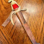 Someone has added a leather strap to tie the knife in place.