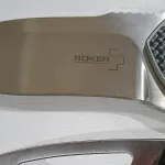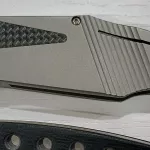 Boker Federal Flipper Titanium 01BO140--Satin finish hollow ground 440C S.S drop point blade with flipper tab and notched thumb rest. Bead blasted milled Titanium handle with two carbon inlays and unique integrated pocket clip. Frame lock-- Nice detent, lockup and blade seating. Blade 3.1/4", Closed 4.75", OAL 8"