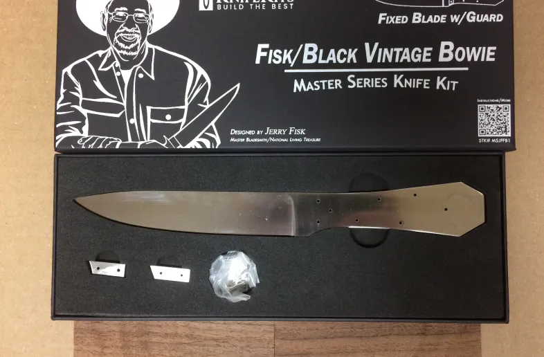 replica of a 1830s guardless coffin handle carrigan bowie. comes with figured walnut slabs for scales, a fun little project for a rainy weekend.