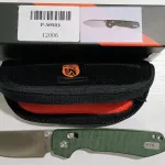 Pic 2 ($SOLD)-- Model# A0502 Racoon -- 14C28N Black Stonewash- Green Micarta scales--Crossbar lock-Blade 3.25", OAL 7.6"