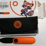 Pic 7 ($100)-- Model# 3718 Corgi --14C28N Black Stonewash-- Orange Aluminum scales--Vanchor Button lock--blade 2.36"--OAL 5.85"