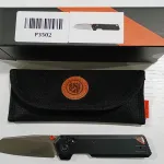 Pic 5 ($210)-- Model# A2210 Psyop --Elmax Stonewash-Tan Norplex Micarta scales--Top liner lock--Blade 3.32"--OAL 8.01"