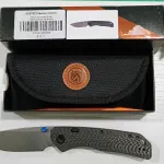 Pic 4 ($140 )--Model# A1611 Marten -- 154CM Stonewash-330 C/ Fiber Black scales--Top Liner Lock--Blade 3.3"--OAL 7.52" -- 2 available