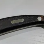 Sawcut Delron handle with brass pins and shield stamped "Old Timer".
