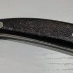 Plain edge drop point blade with gut hook. Clean sharp edge and clear stamps.