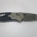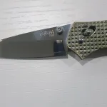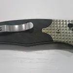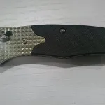 Handle is textured carbon fiber with machined nickel silver bolsters, over stainless steel liners.