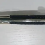 Black nylon (?) handles - no cracks or chips. Fleur de Lis emblem in good shape.2 small pits on butt end. Couple of small pits on butt end. Blade has stains, some light pitting and scratches.