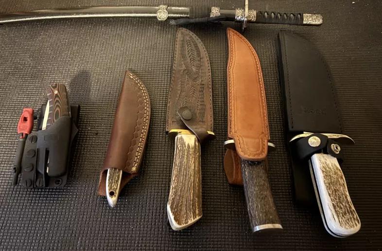 Collectors: 3 Bowies, classic Grohmann DH Russell, Buck folder, Wakizashi
