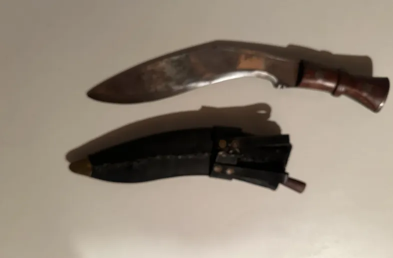 A little rust on the piece and one of the small blades is missing. the loop that holds the sheath will need to be retightened/ resowed