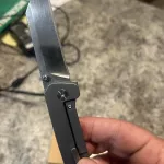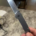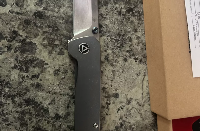 QSP Penguin 154CM framelock with blue titanium scales. It has a bit wear and tear but it still works and cuts great. Just too many knives in my collection...making room for other models. For an extra 20$ ( Canada Post flat rate box) I will ship anywhere in Canada.