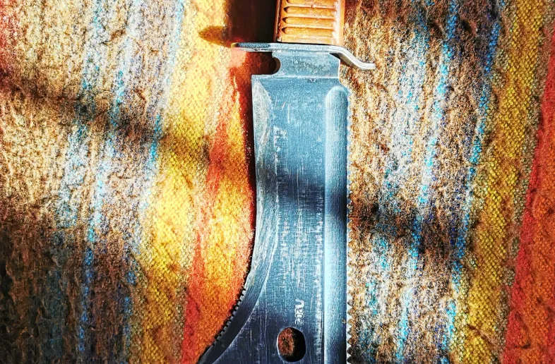 Russian survival machete imported by U.S cavalry back in the mid 80s. Bakelite handle. This knife was featured in escape from tarkov.