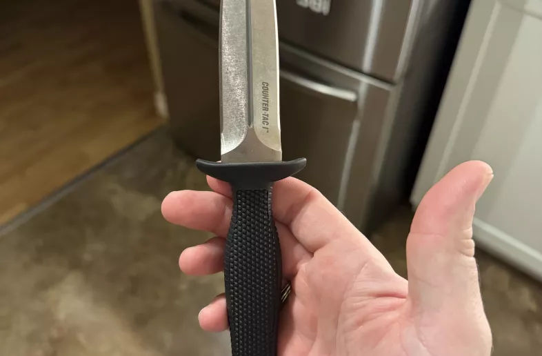 Cold Steel Counter Tac I. Knife is new condition, carried but no use. I have sanded down bracket on rear of sheath and one rivet that was sharp. Belt loop not included $60. More photos/videos upon request. Check out my other ads. Thanks!