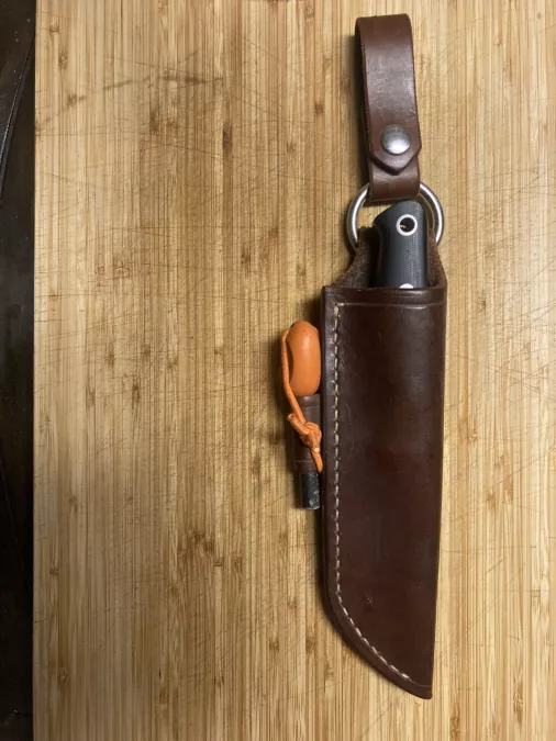 1st Production Run. CPM 3V. Badgerclaw Leatherworks dangler sheath. Lightly used. Razor sharp.