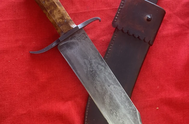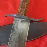 Beuitifull big Bowie,made by nick skinner in Nova Scotia ,never been carried in the field in original condition as revived from nick.ships from New Brunswick ,10”blade and 15”overall length .very nice sheath made in period correct manner,open to trades,let me know what you have