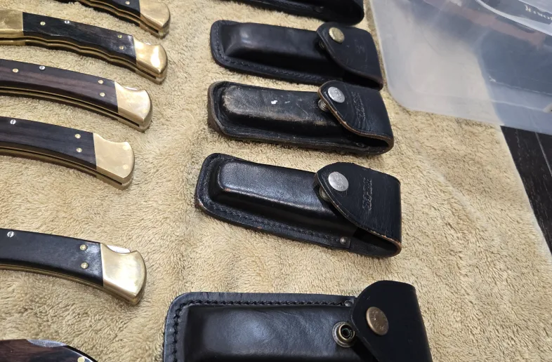 Selling off a few of my buck knives.all brand new never used..the 110s are all 100 each.except one its new knife but doesn't have original case an its 80..the 119 s are 100 each.the phoenix is a 250 dollar knife.150 for it .have otheres including a 105 an a 102 brand new.125 each.an all kinds of Germain made hunting knives.used but all are great condition .all finger grips are sold