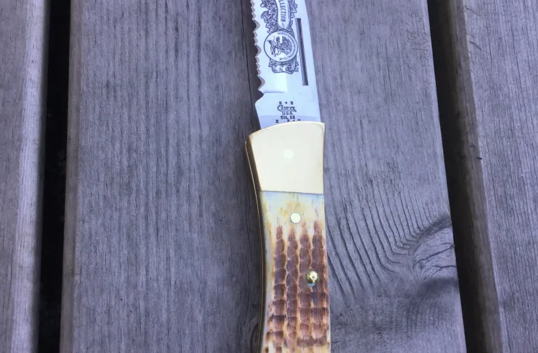 Case XX USA Hunting Heritage Collection Knife. North American Hunting Club. This knife is unused and unsharpened and measures 3 1/2" blade of stainless steel, 8 3/8" opened length. I can ship anywhere in Canada for $20.