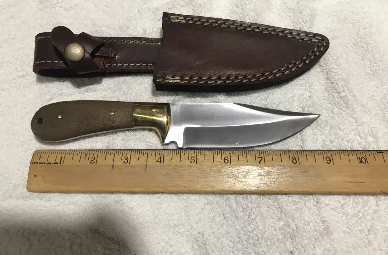 HAND MADE KNIFE WITH LEATHER SHEATH. NO TRADES. $75 PLUS SHIPPING. CHECK OUT MY OTHER ADS.
