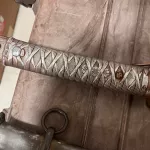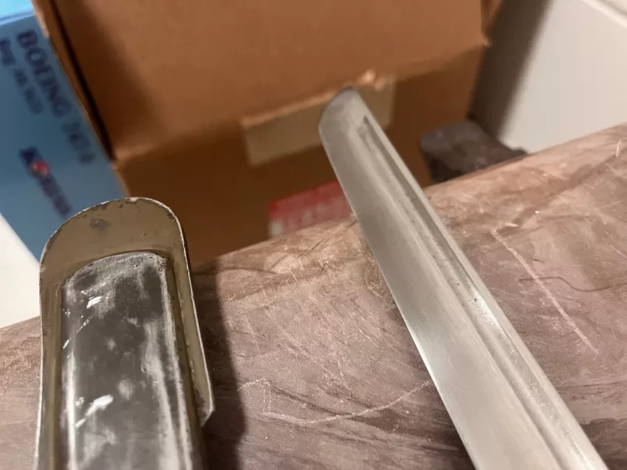 Scabbard condition: paint mostly worn out. Some signs of rust.