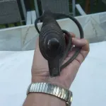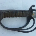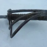 The guard is steel and has fish skin wire bound grips with most of the fish skin having been worn away.