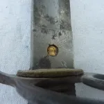 The right side of the blade has a small brass insert which says PROOF. Wilkinson Sword introduced these Proof Discs in 1844.