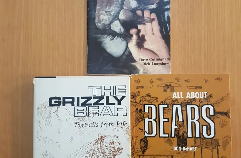 All about Bears, Dehart, 6x9 paperback, Johnson pub. 1971, illustrated ,96 pages. grizzly, alaskan brown, polar bears. add all 30$u.s. Grizzly, Cottingham 6x9 , paperback, summerthought pub. 1981, illustrated, 60 pages, add all 20$u.s. The grizzly Bear Haynes, 6x9 hardback , dust jacket,, university of oklahoma pub. 1966, illustrated, 367 pages, Bears and bear hunting, excerpts , from roosevelt, hornady, and others. add all 20$ u.s. 50 cnd plus shipping.