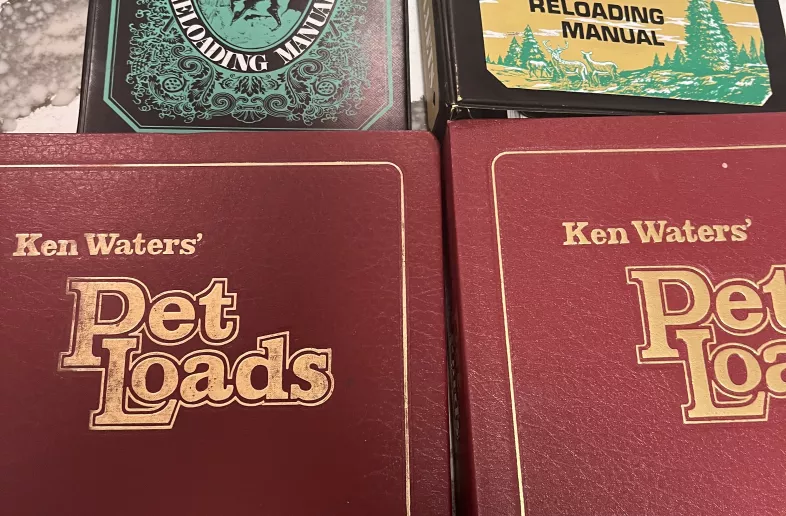 Ken Waters Pet loads Second addition and Supplement #1 to the 3rd edition. Hodgson Powder #27 Data manual . Sierra reloading Manuals.