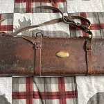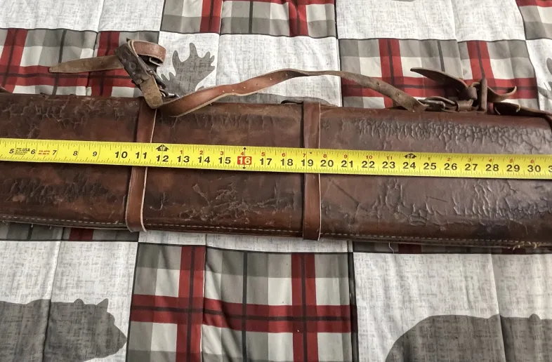 Vintage leather rectangular case, very old, great little piece for someone who enjoys leather restoration projects, man cave piece as is or just as a vintage transport case, holds guns with barrels to 30", asking $25 plus shipping