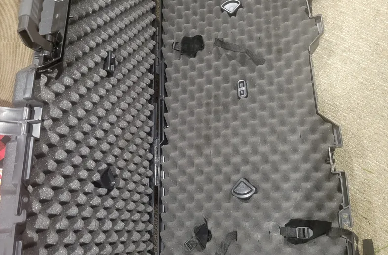 Heavy duty crush resistant case for 2 scoped rifles up to 5e inches long. Rifle can be secured with straps. Good shape.
