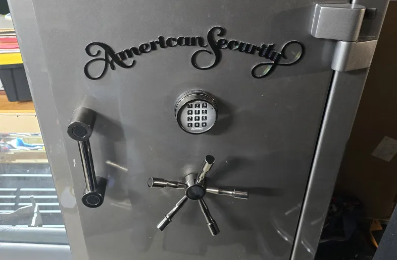 American securities gun safe, adjustable configuration, very heavy and solid quality.
