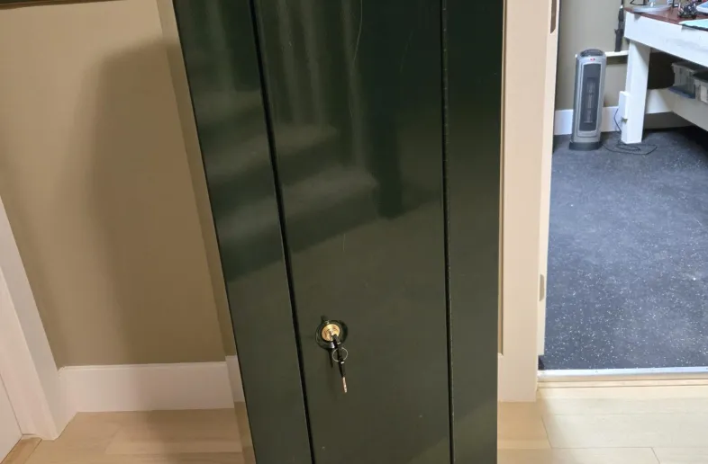 In brand new condition. I'm only selling it because I have downsized my firearms collection and this cabinet is now surplus to my needs. Both keys are included.