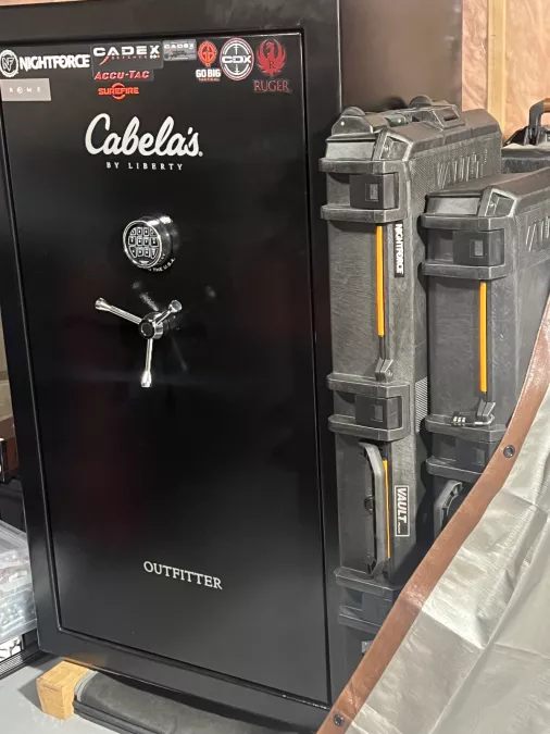Cabelas 40 gun Safe, has some handling marks and a few stickers on the front. Currently located in petawawa. Shipping cost on buyer. Or you can pick it up in petawawa for $500