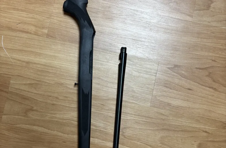 Brand new black synthetic stock, barrel band, and 18.5” barrel for a Ruger 10/22. Only put 10 rounds down the barrel to function test the rifle. Pulled off the receiver for a project.