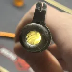 Muzzle wear reads 2, and throat erosion reads slightly over 2 on a M1 Garand scale for what it's worth. Rifling is still nice and sharp, and the bore looks quite shiny with some G96 oil. Front sight base is also present.