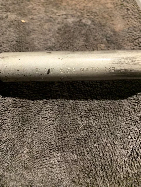 - 16" B MP marked - ACR barrel. Gas block (no regulator), locking ring and spacer attached. Unknown round count. $500