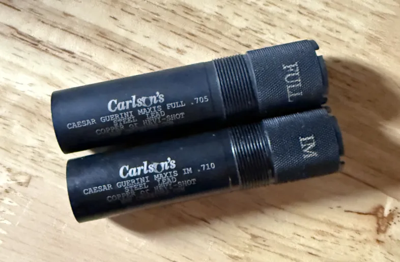Two blued sporting clays Carlson’s choke tubes for a 12ga Caesar with the Maxis thread system. IM and Full constrictions. $100 shipped for both. Excellent condition with very little use.