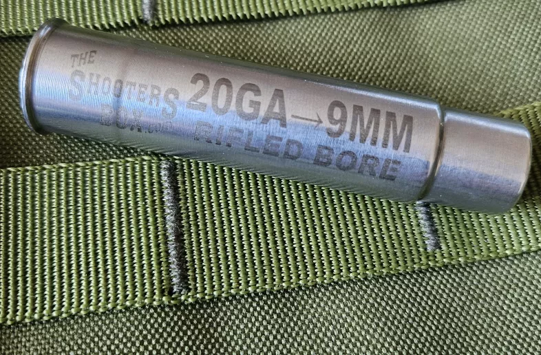 New, never used 20g to 9mm barrel adapter manufactured by The Shooter's Box.