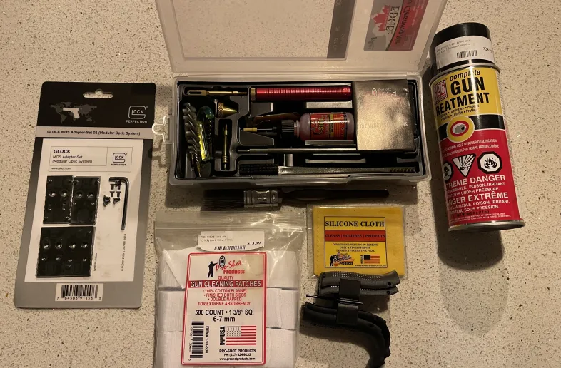 Various tools and products to clean your gun.