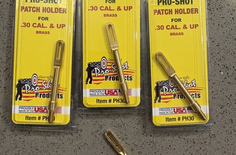 4 new brass patch holders for .30 and up calibers