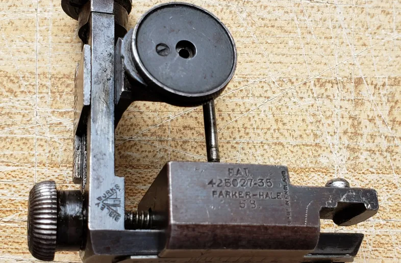 For sale a Parker Hale PH5B Mk VII target rear sight for Enfield P14, look very old. In good used condition, all the knob and adjustable eyepiece work. Missing top screw on the side vernier scale plate. Also for sale a Parker Hale 215F front trigger guard screw triangular sling swivel also in good used condition. Asking $100 for the sight and $25 for the swivel. EMT for payment. Thanks for looking.