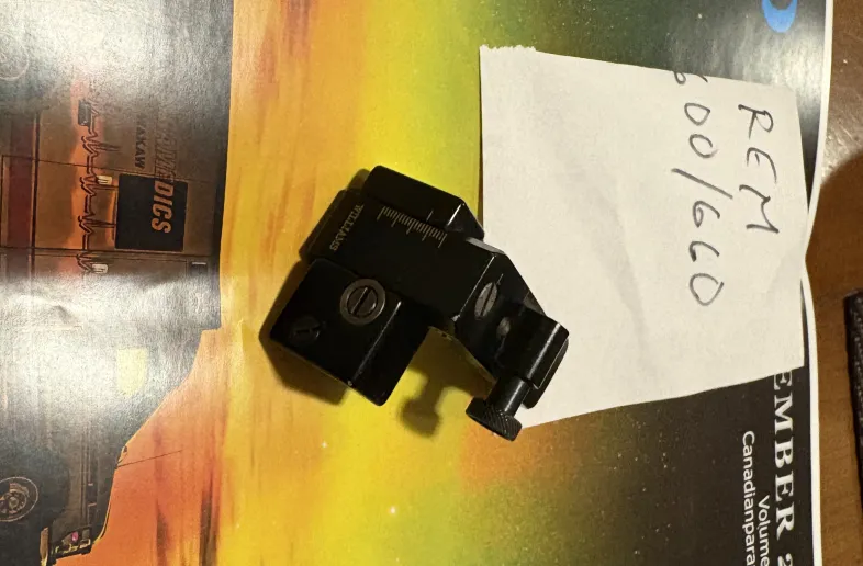 NO TRADES PLEASE. Williams aluminum rear peep sight for the Remington 600/660. Just removed from a rifle. All adjustments work properly. No messed with screw heads or threads. Mounting screws included. Very light finish wear from the gun case as shown in pics. $100 FIRM PLUS SHIP.