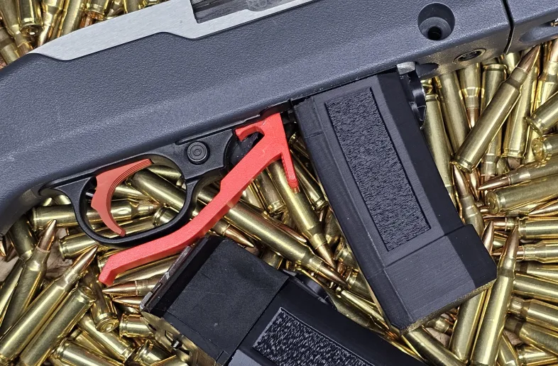 BX-1 magazine smg style extensions for 10/22 rifle, SR-22 rifle, 22 Charger pistol, .22LR Ruger American Rimfire rifle, .22LR Ruger Precision Rimfire rifle and .22LR Ruger 77/22 rifle tuf22 Tuf-22 Adler rf-224 printed in ABS plastic with heat set metal threads and hardware included. NO GLUE REQUIRED