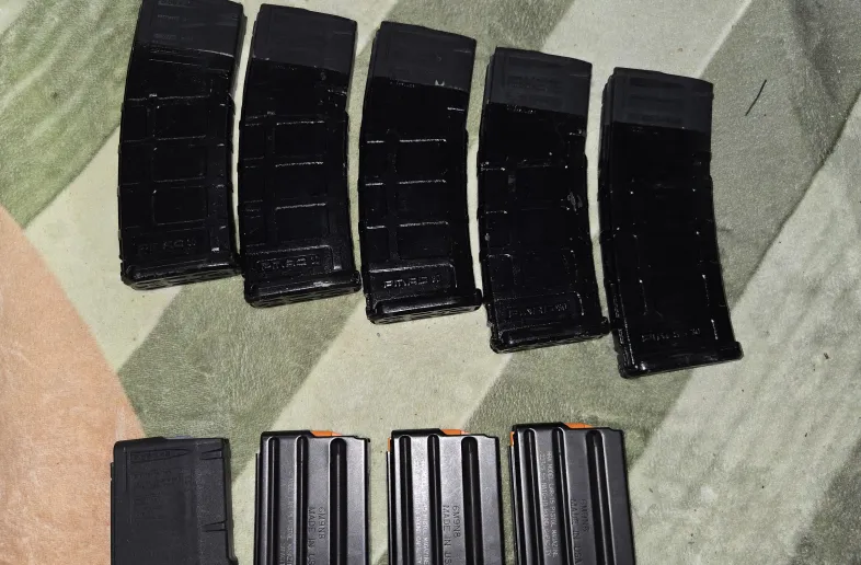 X5 5/30 pmags( painted gloss black except where the go into magwel)