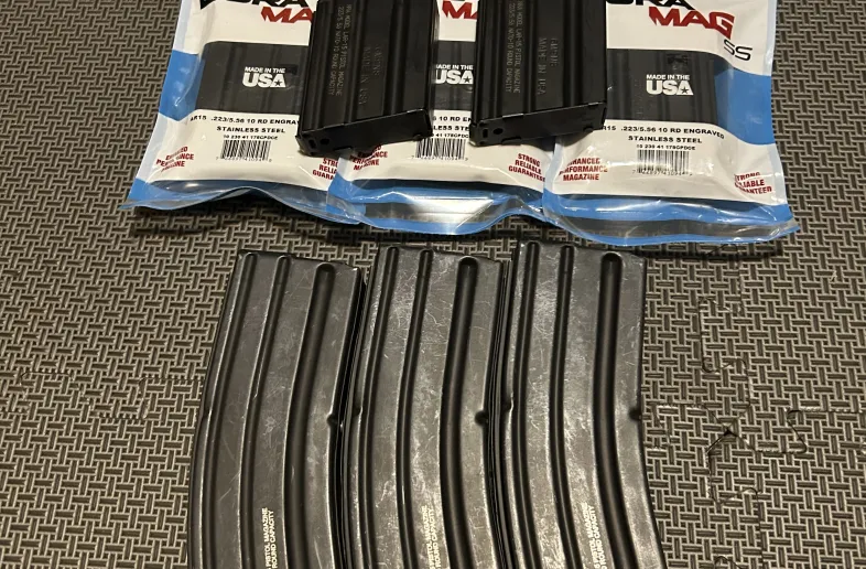 6 x C Products LAR-15 10 round magazines - 3 very lightly used, 3 new in package - (picture shows 5 though there are 6) - $230 plus shipping