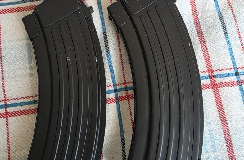 Selling two mags for ak 47, Kalashnikov. Unused, pinched to 5 rounds, made in Korea.