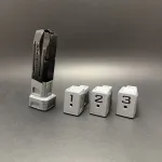 Larger competition style magazine bases that replace the factory plastic bodies and add a bit more something to grab onto. They do not add any magazine capacity. For an extra $1 each, can include numbers on them. Available in Black, titanium grey, blue, red, white and gold. $20 shipping to anywhere in Canada. -NOTE- magazine not included