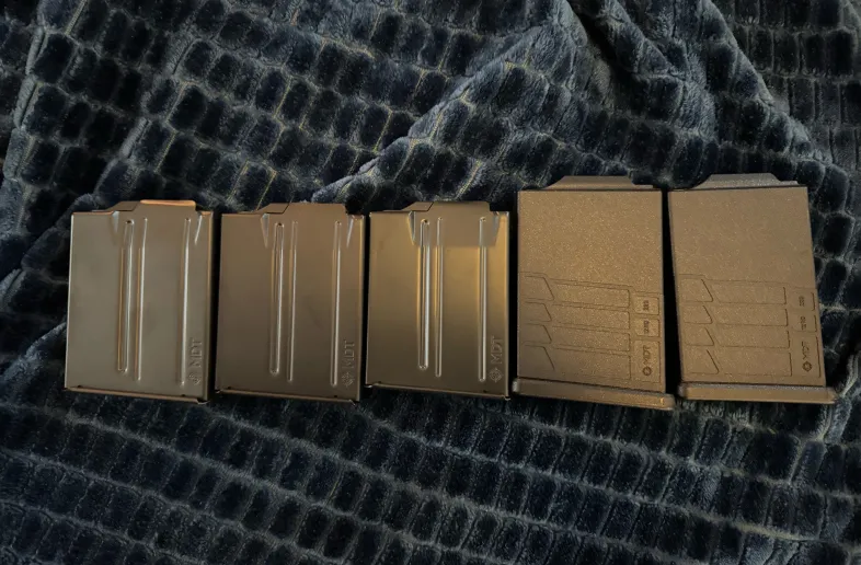 5X 10rd AICS magazines made by MDT. 3x metal, 2x polymer. 1 polymer is a 12rd magazine. All like new, barely used in excellent condition.