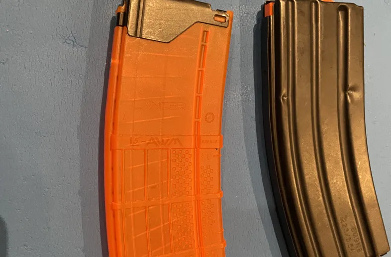 Looking to sell two Stanag pattern magazines- a Lancer L5 orange magazine and a duramag stainless steel magazine. These are both 5/30 round in good condition. $25/magazine or 45 for both